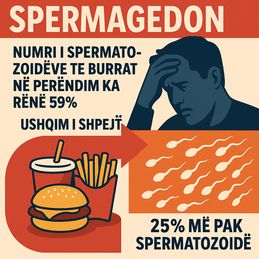Studiuesit analizuan ndikimin e dietës në spermën e meshkujve dhe arritën në përfundimin se “spermagedoni” ishte shkaktuar kryesisht nga zakonet e pashëndetshme të ngrënies.